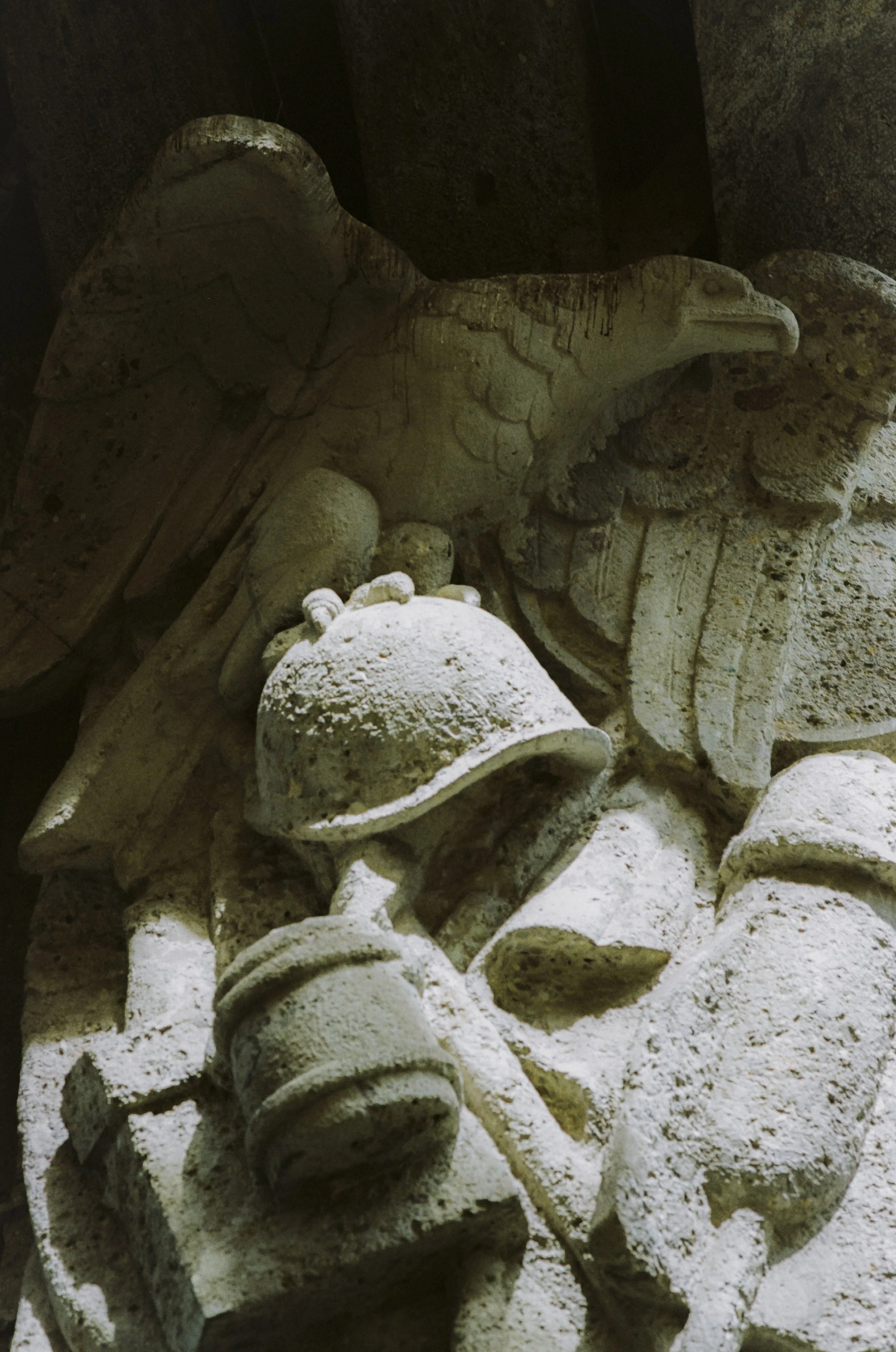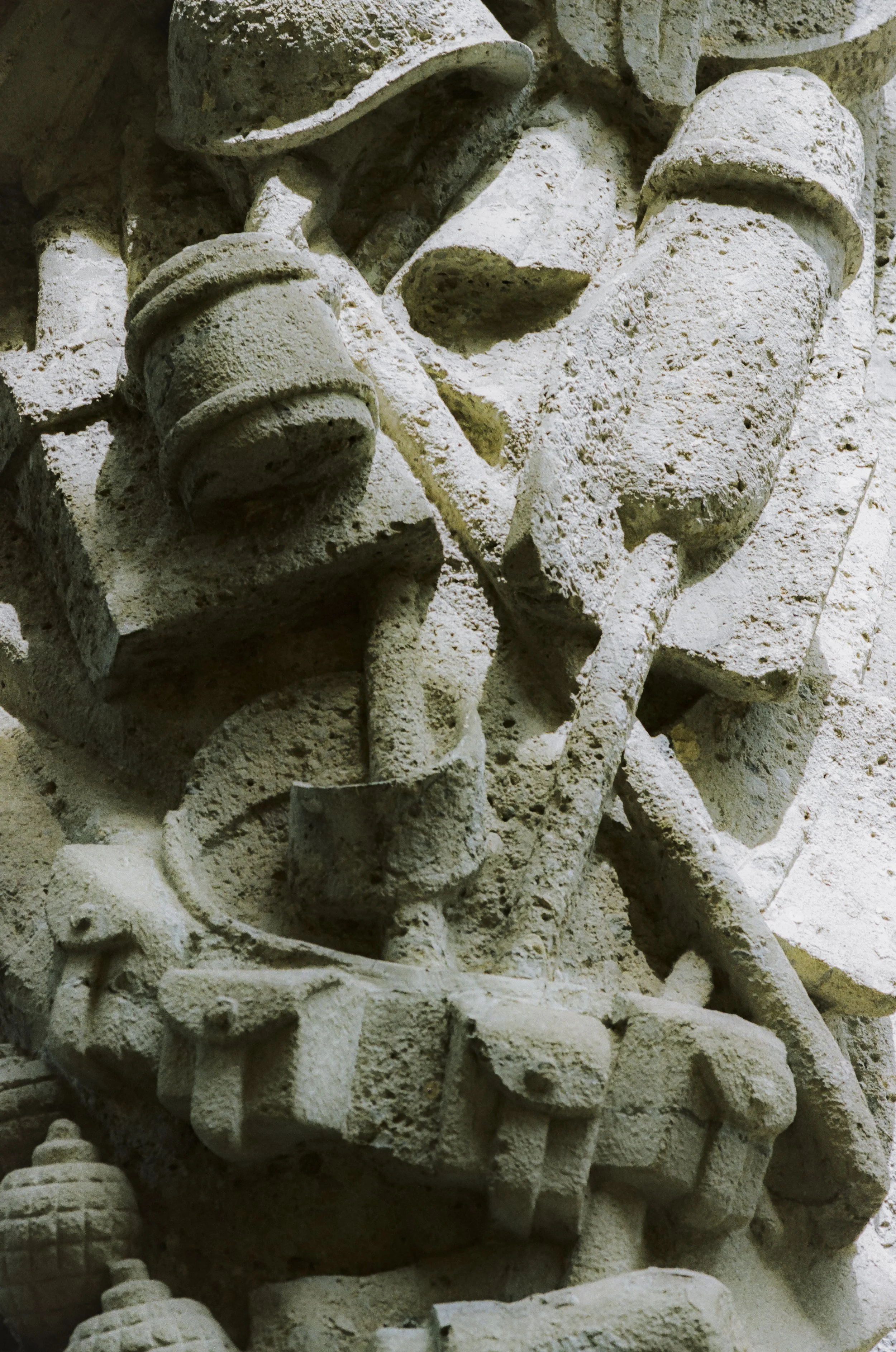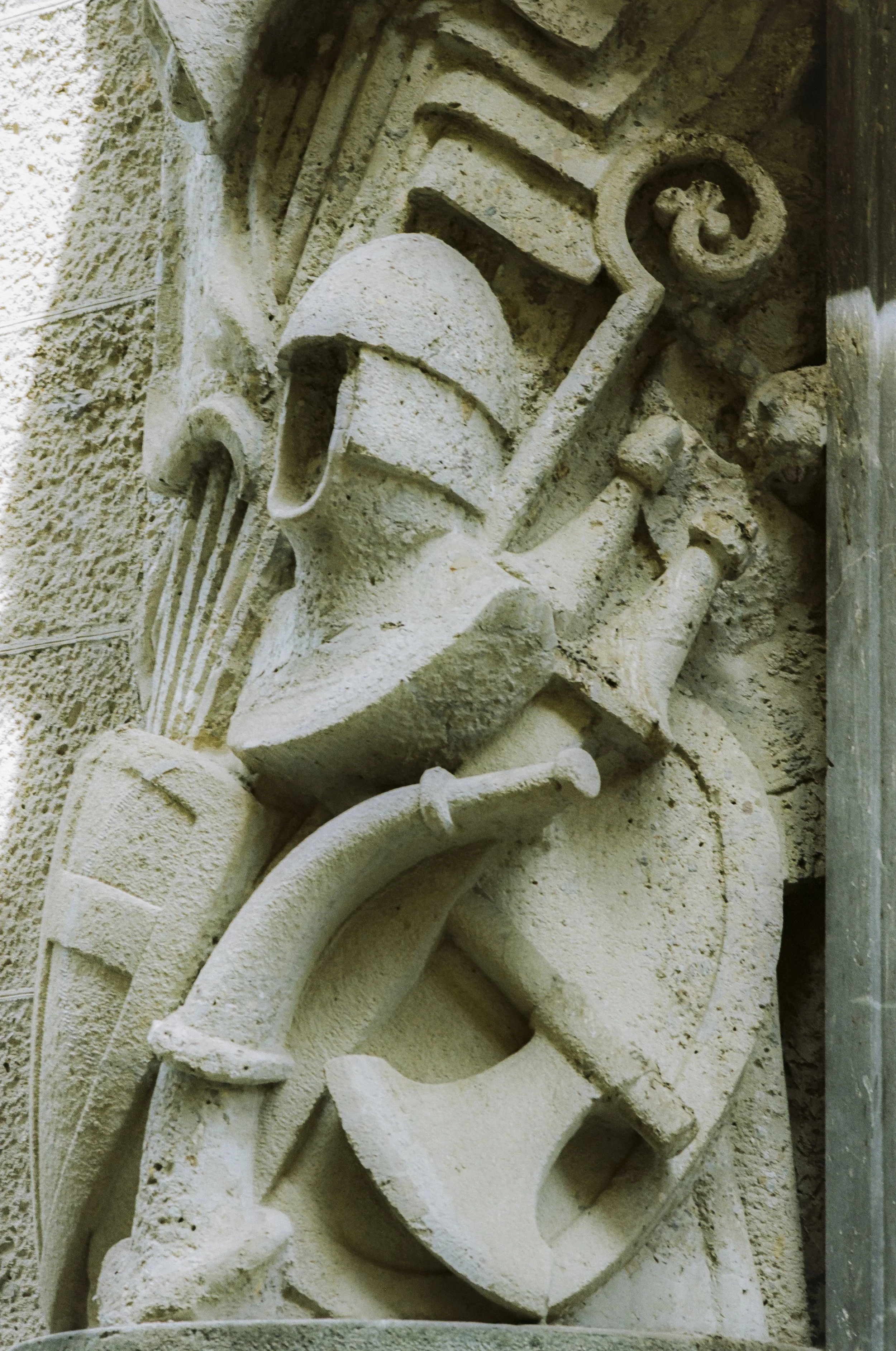 The new wing’s main building entrance is framed by two columns, each surmounted by sculptures that symbolize an evolutionary form of warfare: traditional and mechanized. This symbolism is not accidental. The new façade of the building was constructed during the Fascist ventennio (twenty years), a period in which a fragile and fabricated – yet pervasive – image of a militant, victorious, and proud Italy was deliberately constructed. A nation adorned with the Roman eagle, the fascio littorio, and other elements drawn from the classical imaginary. The left column features ancient symbols of war, evoking the Middle Ages: battles between horsemen with shields and lances, charging at the sound of a horn. It is a mythical and romanticized narrative of war as a heroic and patriotic gesture, to which the right column seeks to connect, portraying the horrors of modern warfare: grenades, machine guns, and ammunition. A composition crowned by the figure of an eagle, anchoring the architecture within a specific historical and political context. In many ways, this portal perfectly embodies the delusional political project of Fascism in Italy.