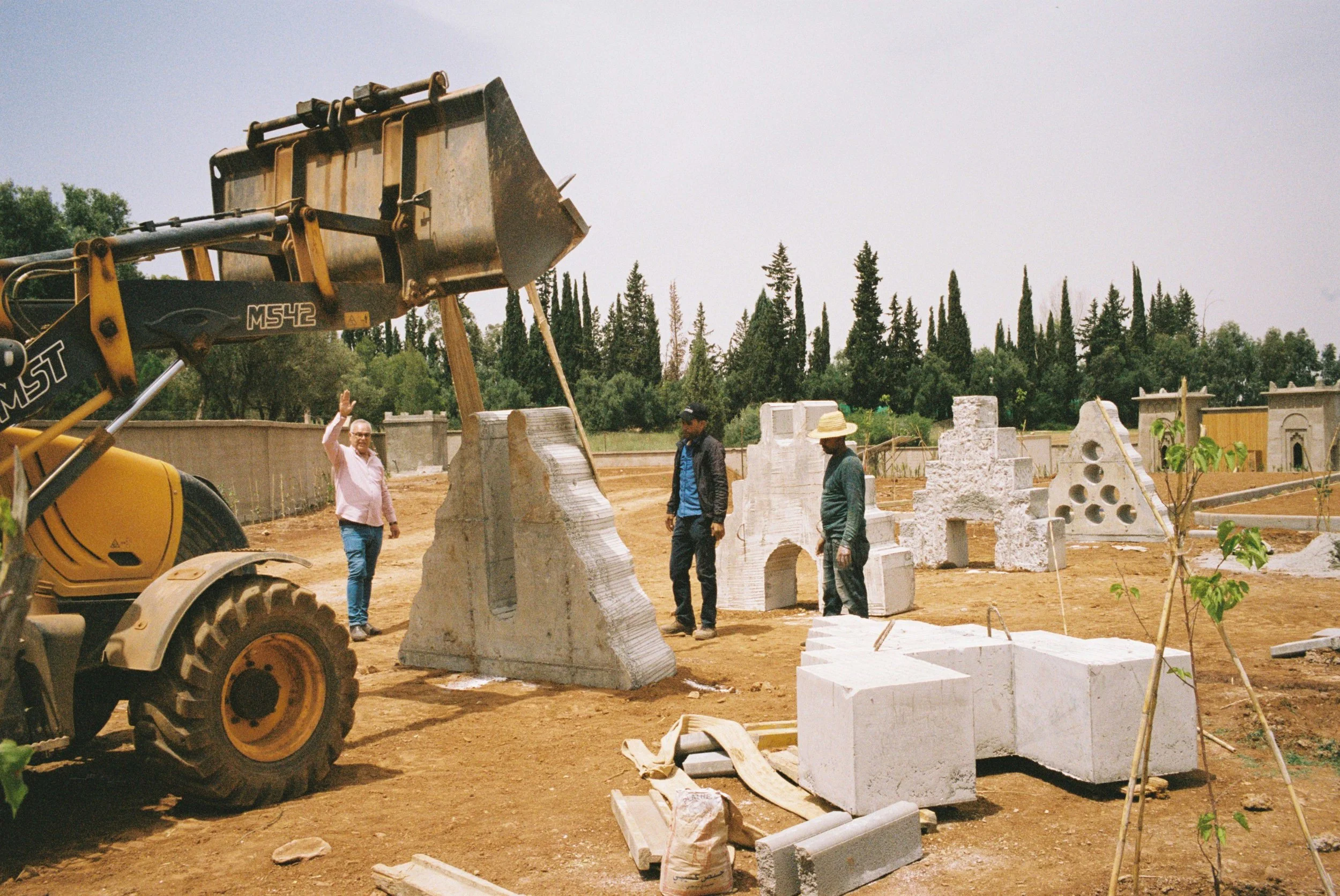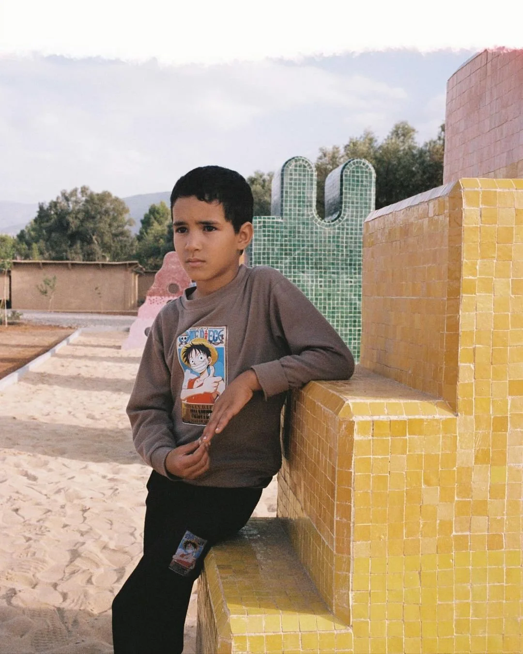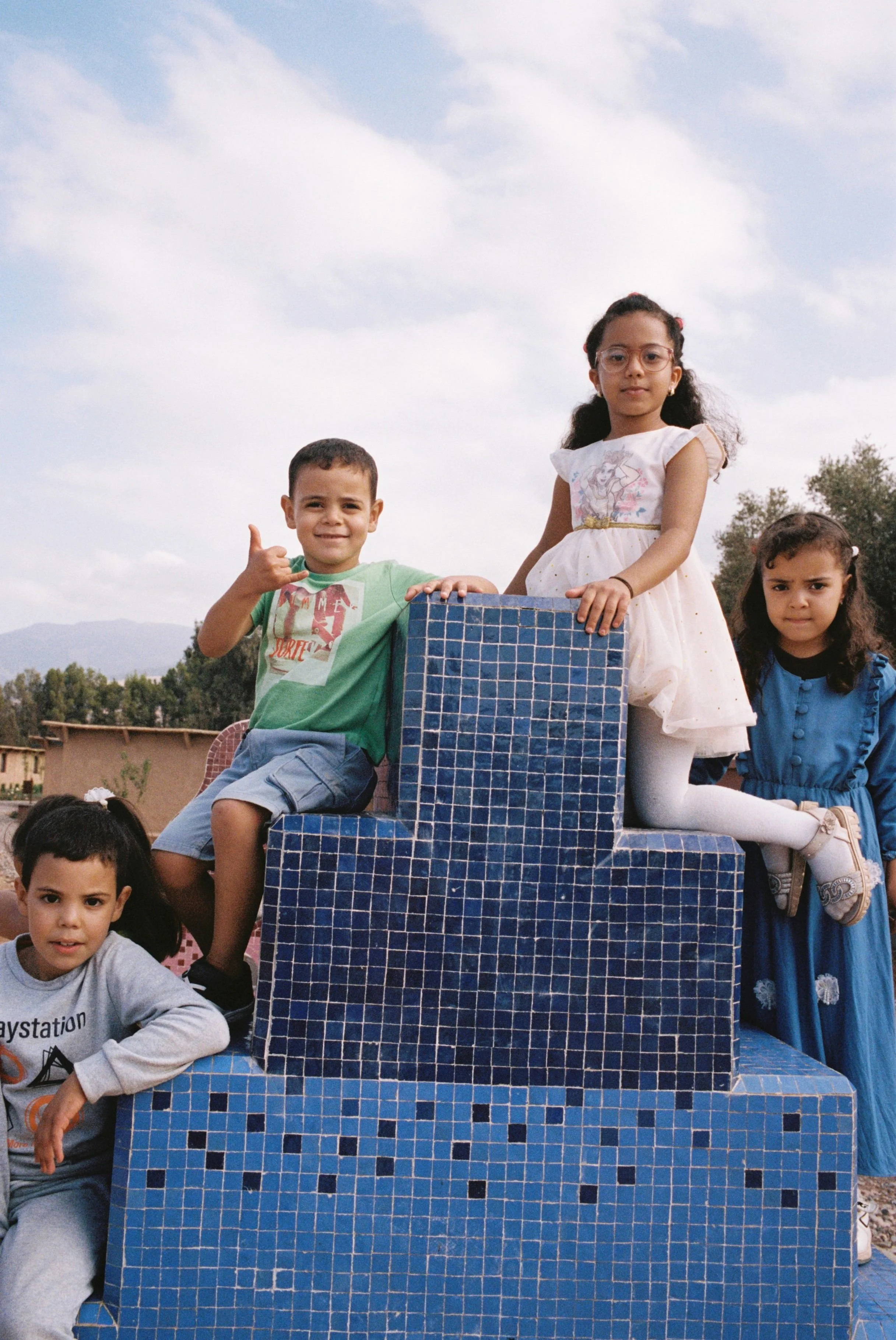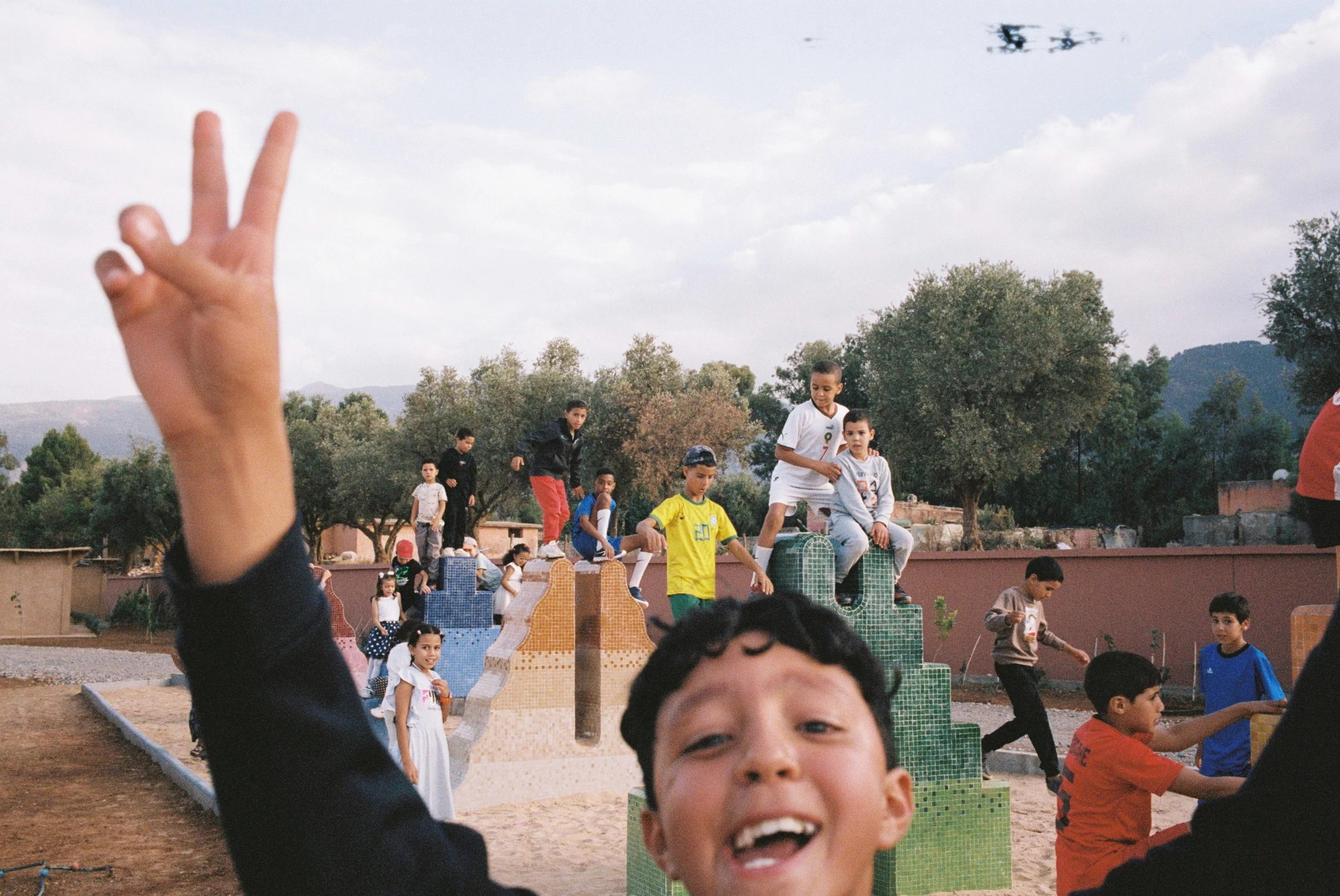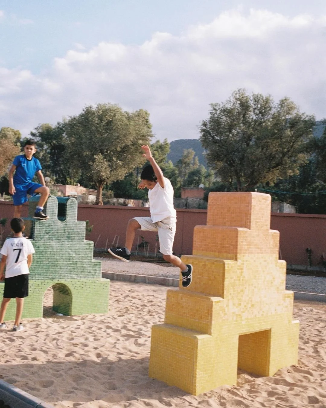 The first design is in my notebook: a series of portals in black ink, a path of transformation, each portal leading to a new stage, a new experience. I liked this idea so much that I made the models on a small scale in plaster. They were there waiting for a sign to be built in the real world. Two years ago, there was an earthquake in Morocco, and I needed to help but didn’t know how. Pablo Bofill, my husband, put me in contact with the building company SGTM and Elke Bardor who were at the heart of the construction of the orphanage in Amizmiz (where the earthquake hit the strongest) along with The Moroccan Association for Aid to Children in Precarious Situations lead by Touraya Bouabid. Suddenly it all made sense, the portals were meant to be there, to become a playground for the children.